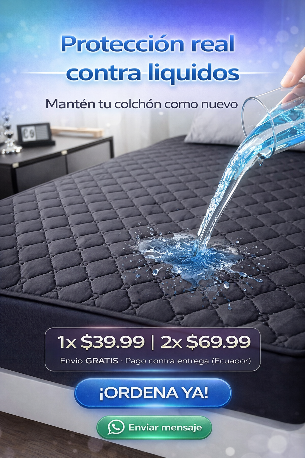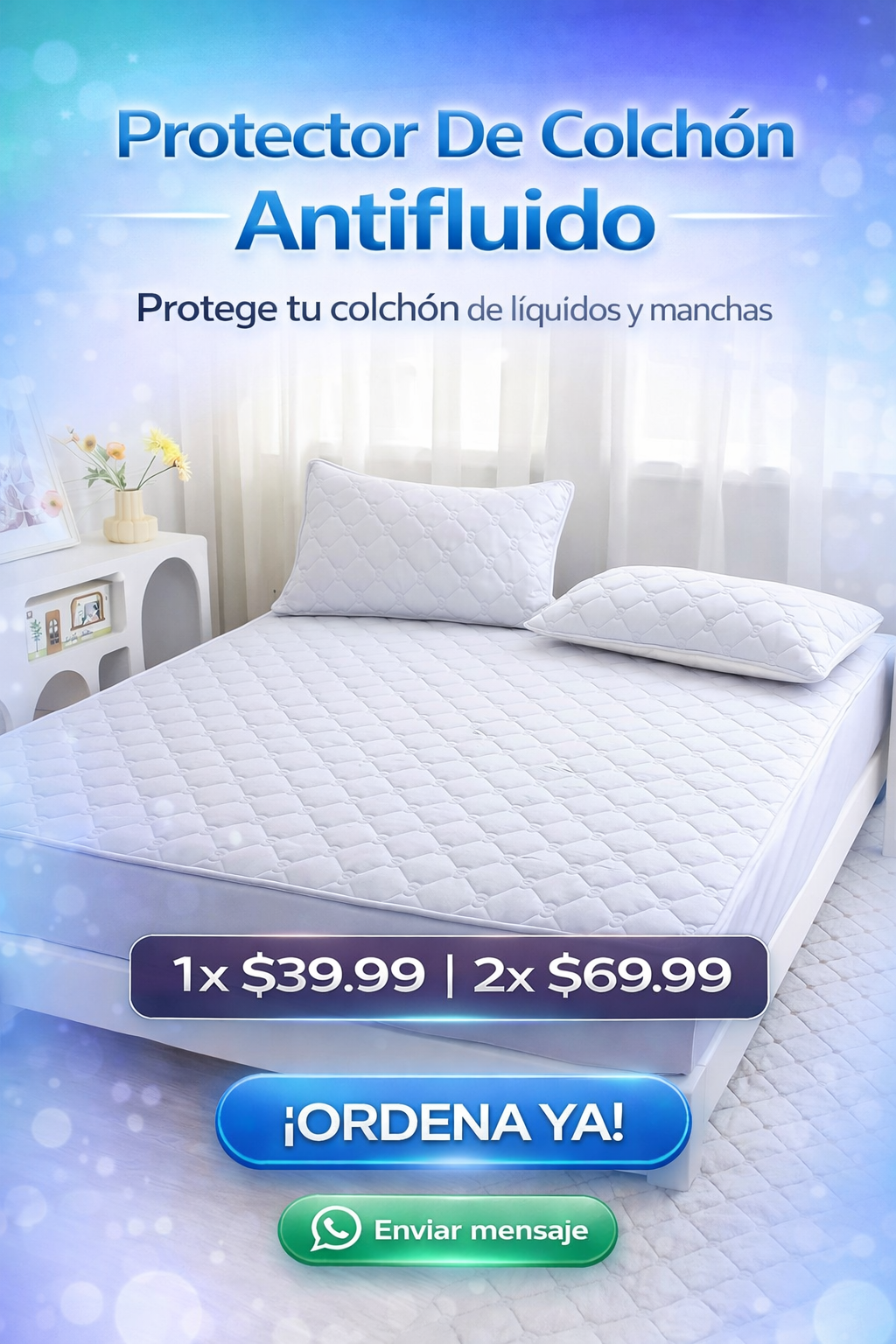 Sí, el Protector De Colchón Antifluido cuenta con una capa impermeable que protege tu colchón contra derrames de líquidos, manchas y humedad. Es ideal para familias con niños pequeños o mascotas.